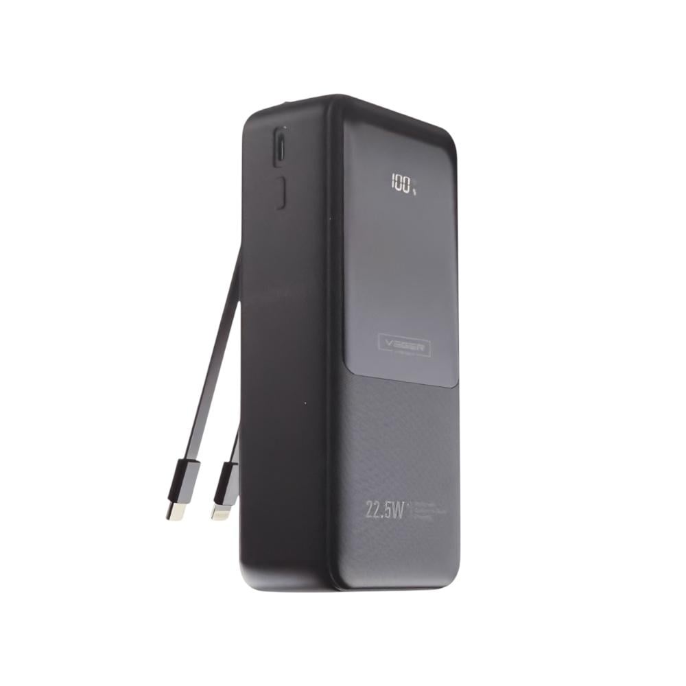تمتع بشحن سريع وآمن مع باور بانك VEGER J-BrauV بسعة 30000mAh وتقنية PD بقوة 22.5 واط. تصميم أنيق وعملي يحتوي على كابلات مدمجة (Type-C و Lightning) تناسب أغلب الأجهزة، مما يغنيك عن حمل كابلات إضافية.